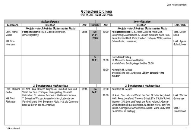 Kontakt: Tel.: +43 4843/5228 E-Mail: pfarre.ausservillgraten@dibk.at | |