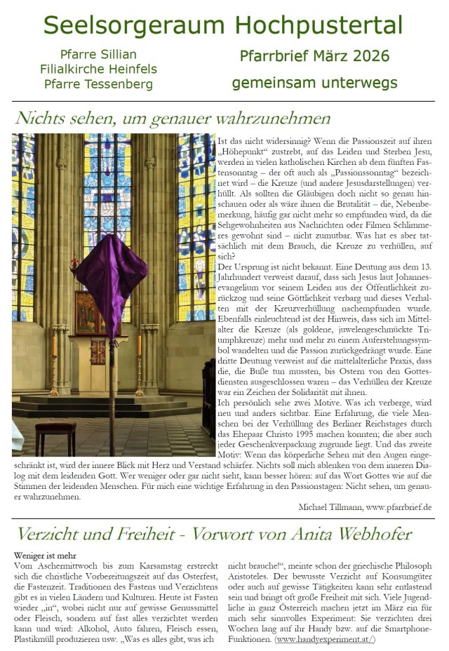 Kontakt: Tel.: +43 4842/6319 E-Mail: pfarre.sillian@dibk.at | |